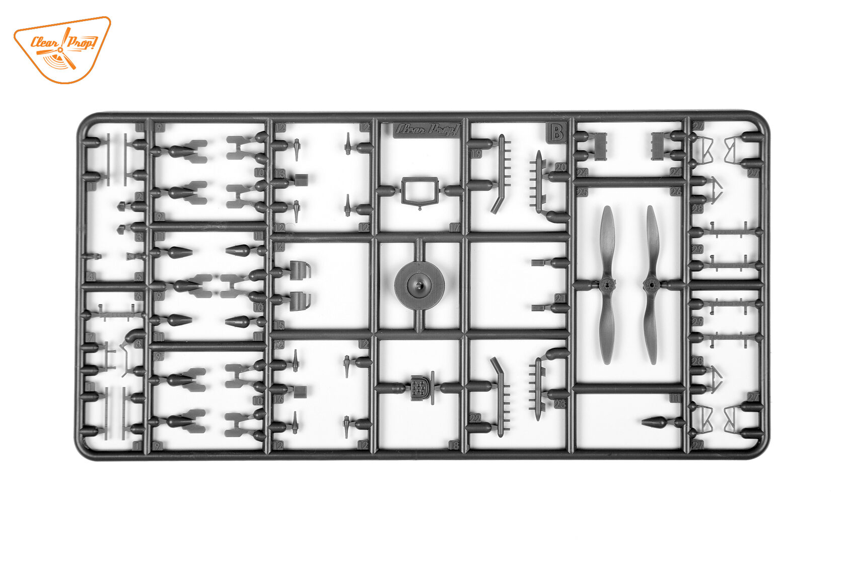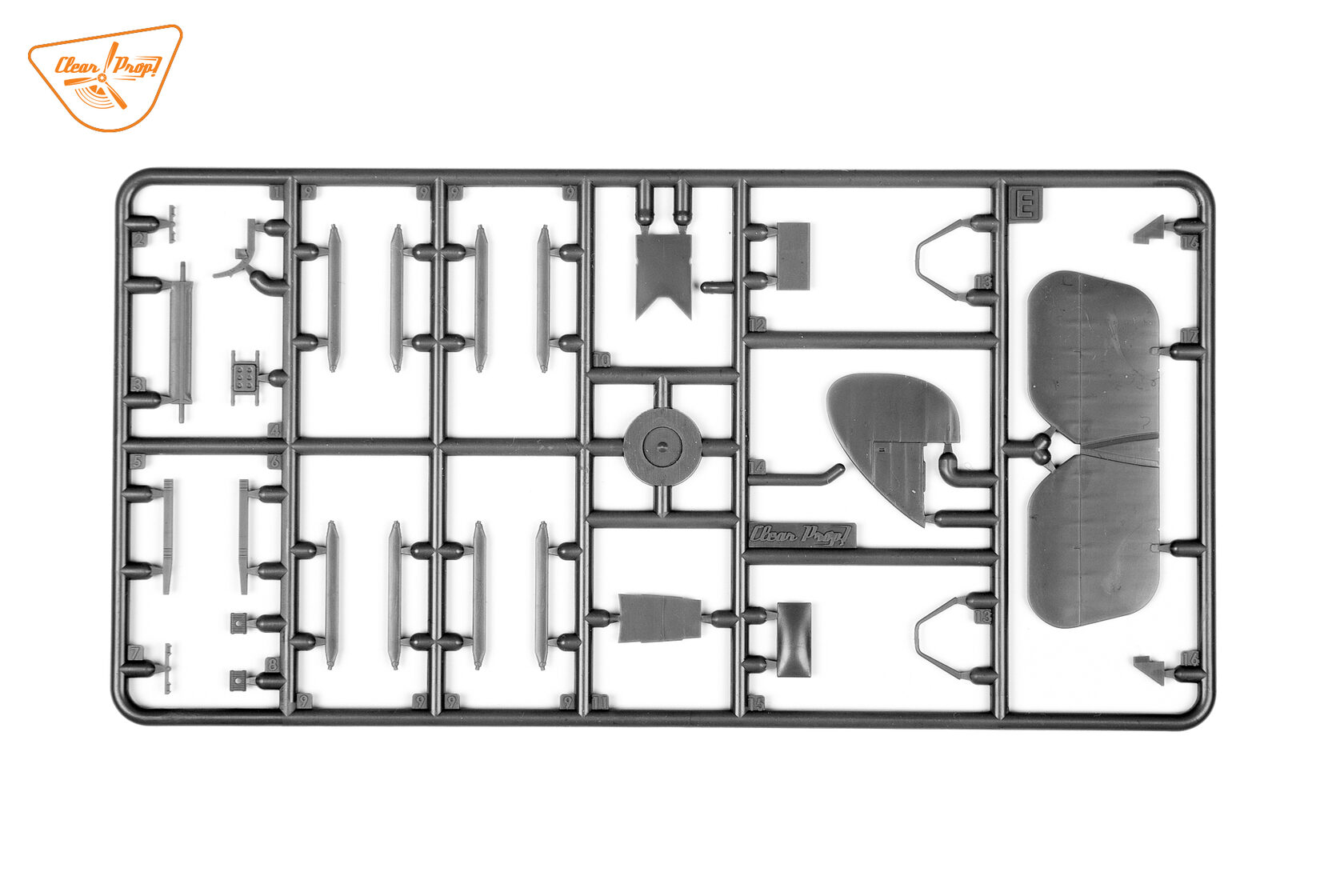 This kit is designed for advanced modellers and includes set of plastic parts for the assembly of one model of the aircraft (six sprues, one of which is clear), set of photoetched parts and sheet of decal.