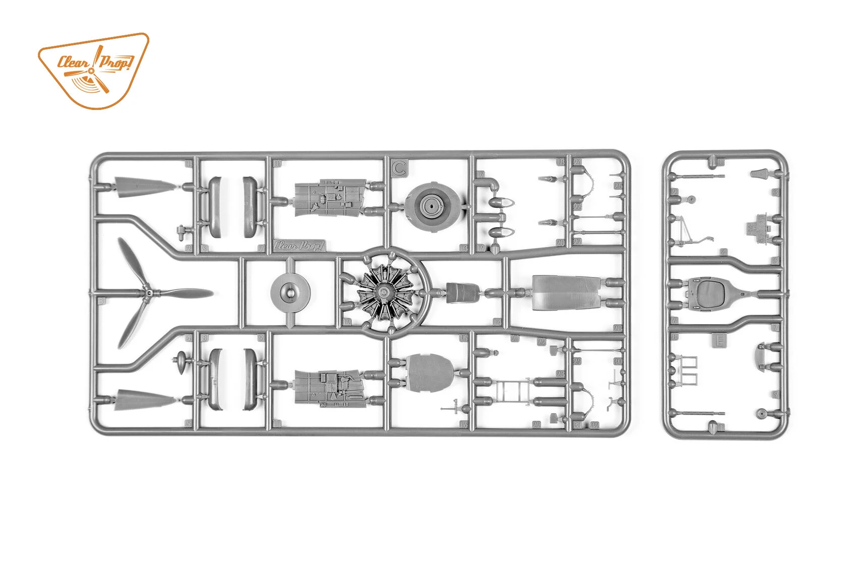 Easy-to-assemble kit that is suitable for both beginners and advanced modelers and includes set of plastic parts for the assembly of one model of the aircraft (seven sprues, one of which is clear) and decal.
