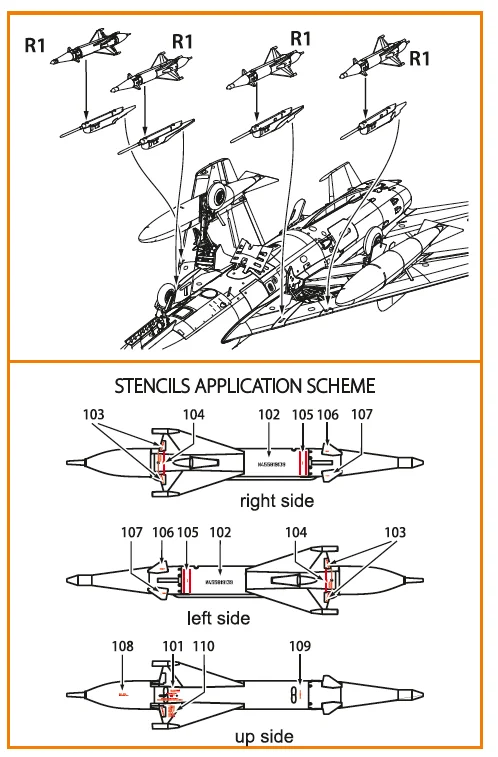1/72 RS-2U/US (4pcs) used on the following airplanes: MiG-19PM/PML, MiG-21PF/PFM, Su-9 CPA72177