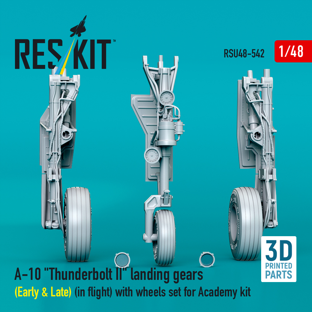 A-10 “Thunderbolt II” landing gears (Early & Late) (in flight) with wheels set for Academy kit (3D Printed) (1/48)