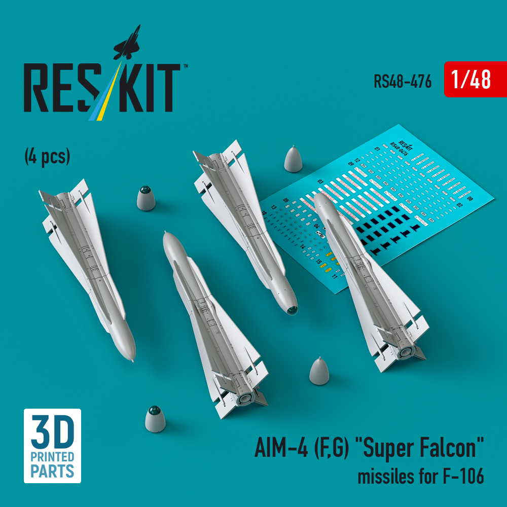 AIM-4 (F, G) Super Falcon missiles for F-106 (4 pcs) (3D Printed) (1/48)