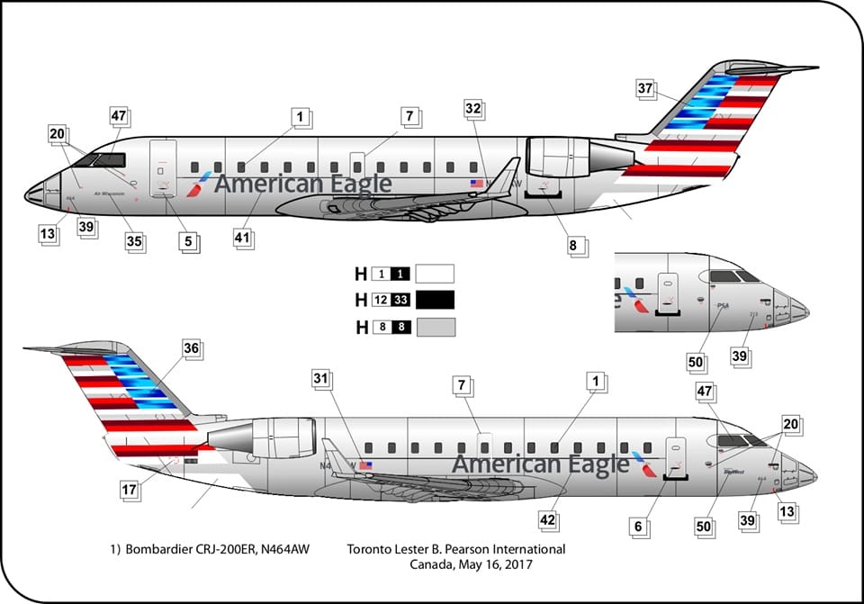 Canadair Regional Jet 200 (CRJ-200) – medium-haul passenger aircraft for local airlines. The aircraft was based on the Canadair Challenger design. It was purchased by Canadair from Bill Lear in 1976. The CL-600 design was stretched 19 feet 5 inches ( 5.92 meters) to create the CRJ-200, with fuselage plugs fore and aft of the wing, plus a reinforced and modified wing with two more emergency exit doors. CRJ-200 pioneered the new 50 seat jet class, and has since become a runaway sales success. CRJ-200 the sameCRJ-100, butwith anotherengines.