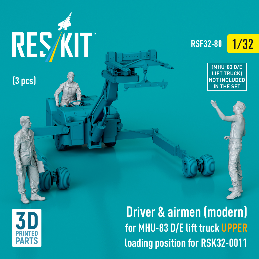 Driver & airmen (modern) (3 pcs) (MHU-83 D/E lift truck UPPER loading position for RSK32-0011) (3D Printed) (1/32)