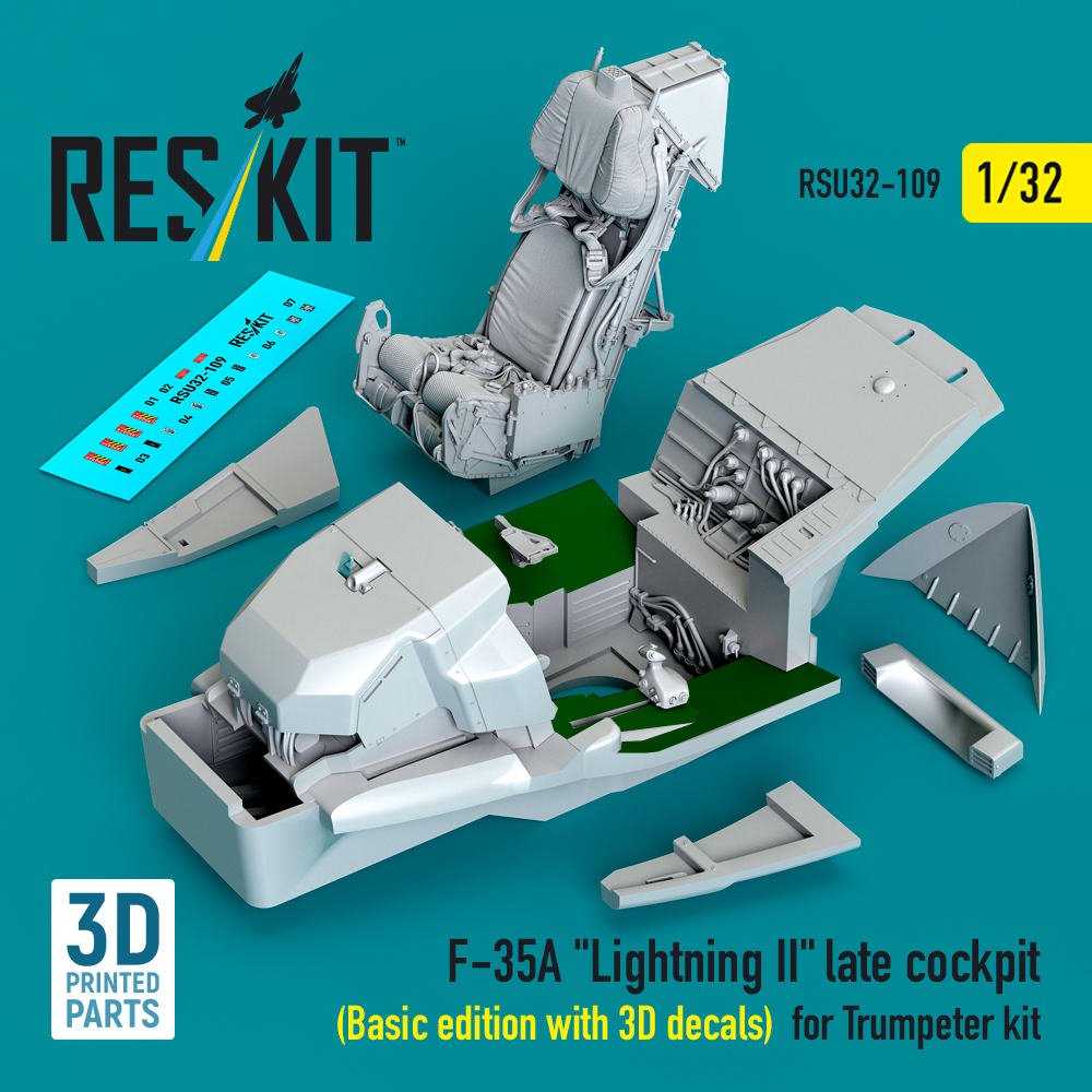 F-35A Lightning II late cockpit (Basic edition with 3D decals) for Trumpeter kit (3D Printed) (1/32)