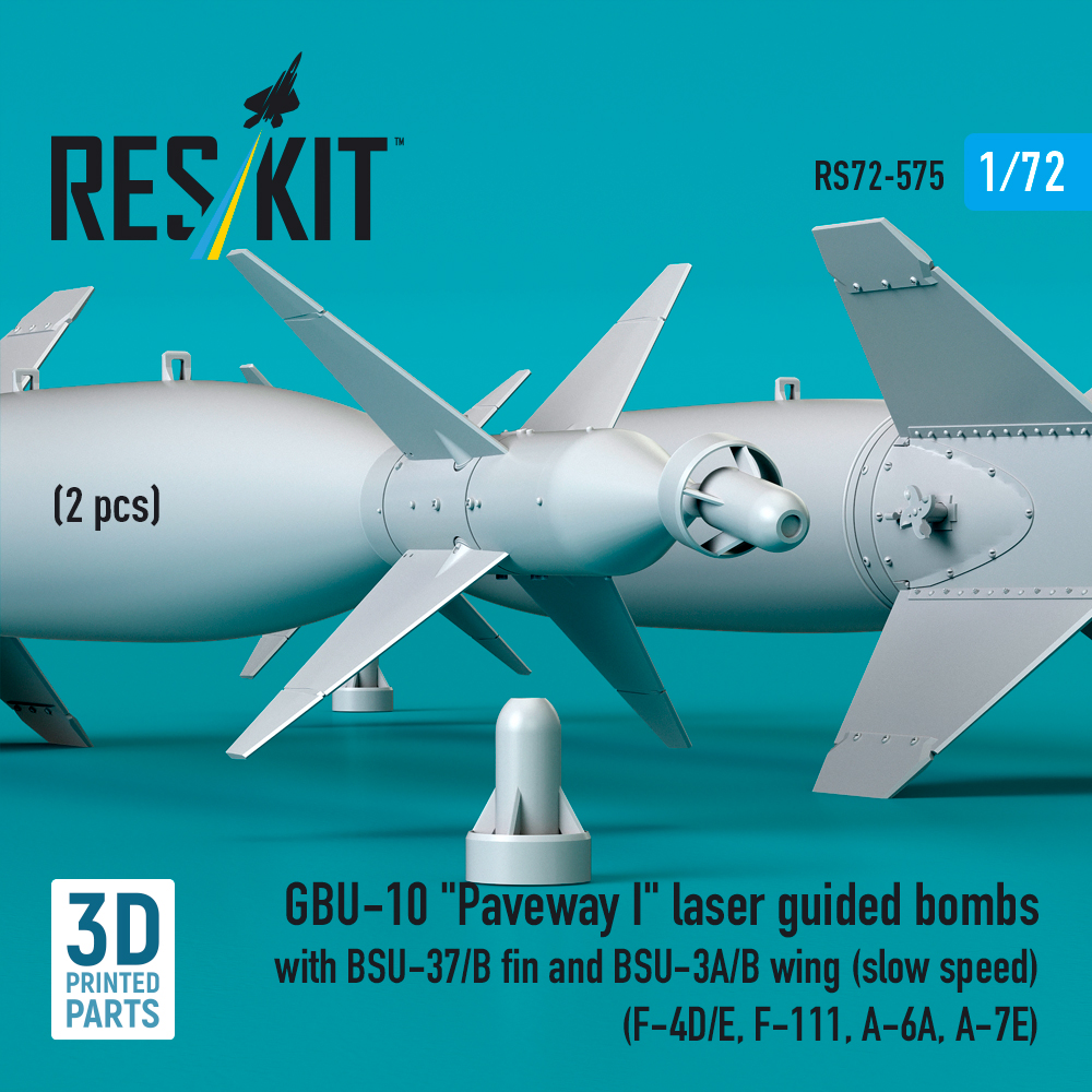 GBU-10 Paveway I laser guided bombs with BSU-37/B fin and BSU-3A/B wing (slow speed) (2 pcs) (3D Printed) (1/72)