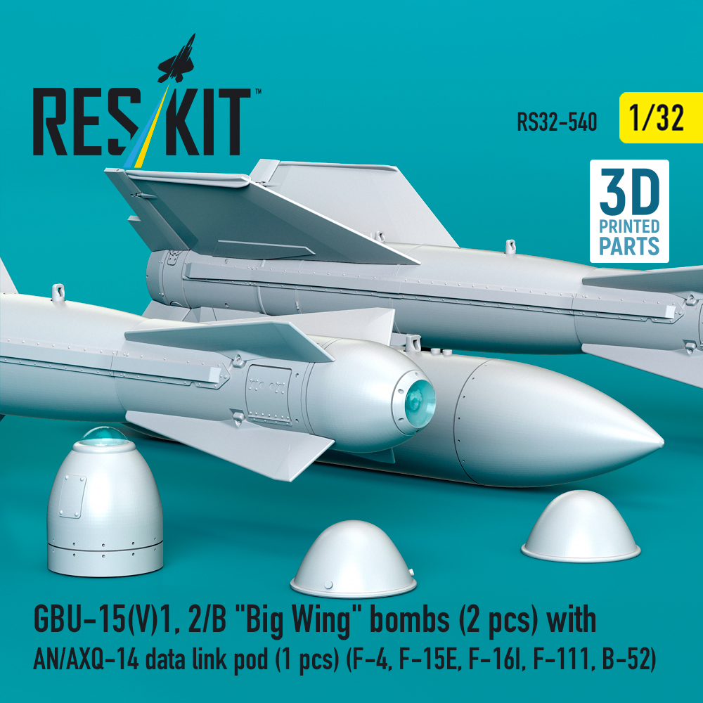 GBU-15(V)1, 2/B Big Wing bombs (2 pcs) with AN/AXQ-14 data link pod (1 pcs) (3D Printed) (1/32)