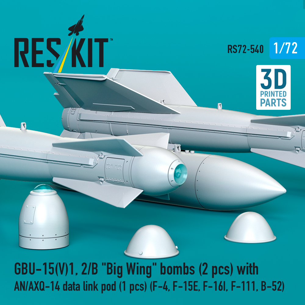 GBU-15(V)1,2/B Big Wing bombs (2 pcs) with AN/AXQ-14 data link pod (1 pcs) (3D Printed) (1/72)