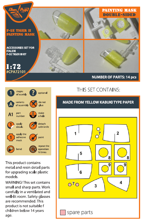 Easy-to-assemble kit that is suitable for both beginners and advanced modelers and includes set of plastic parts for the assembly of one model of the aircraft (three sprues, one of which is clear) and decal.