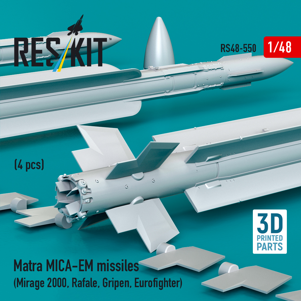 Matra MICA-EM missiles (4 pcs) (3D Printed) (1/48)