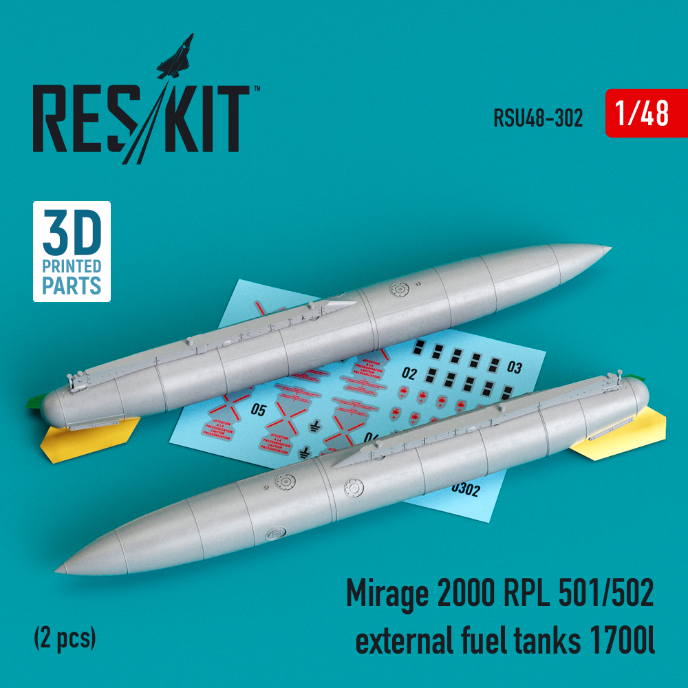 Mirage 2000 RPL 501/502 external fuel tanks 1700lt (2 pcs) (3D Printed) (1/48)