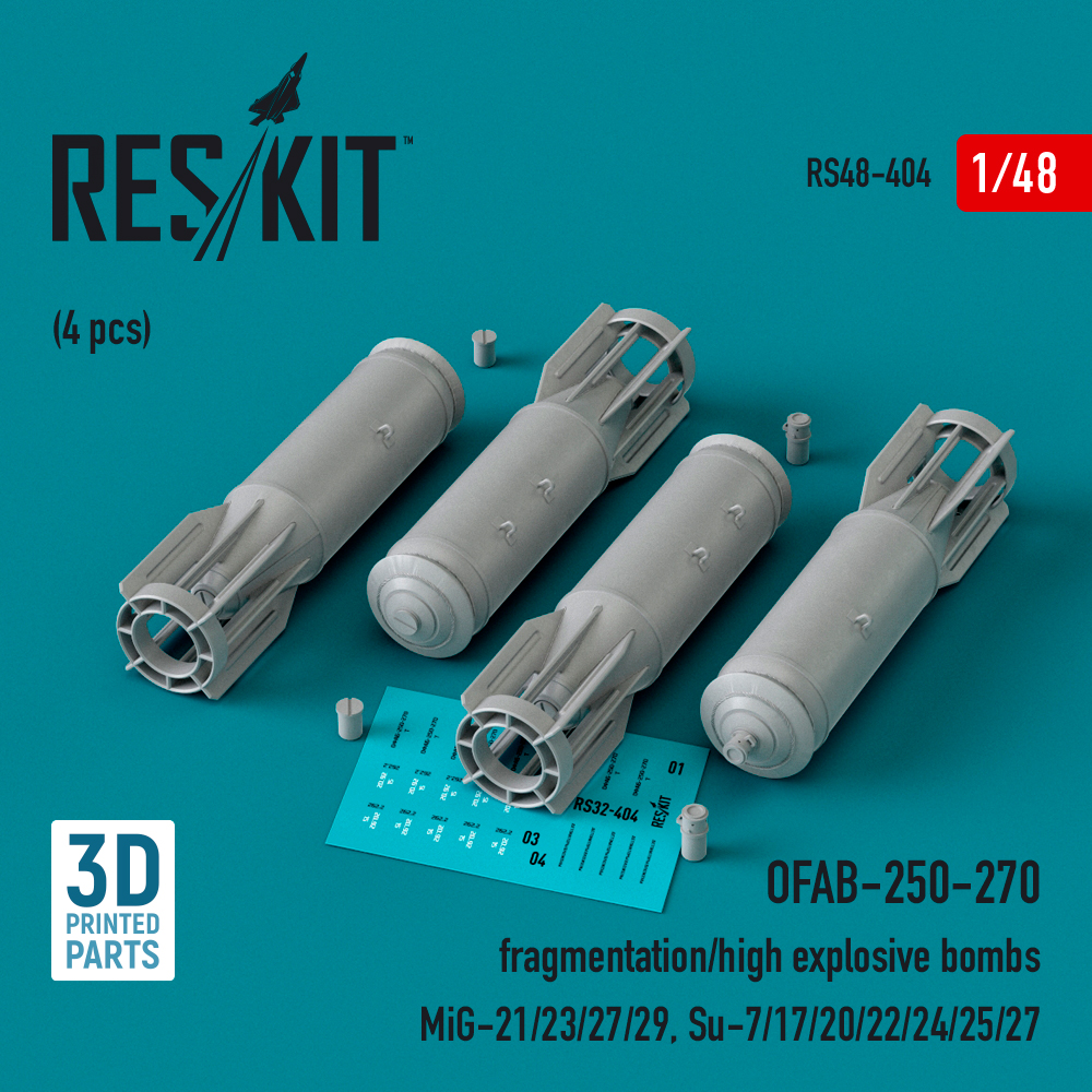 OFAB-250-270 fragmentation/high explosive bombs (4 pcs) (3D Printed) (1/48)