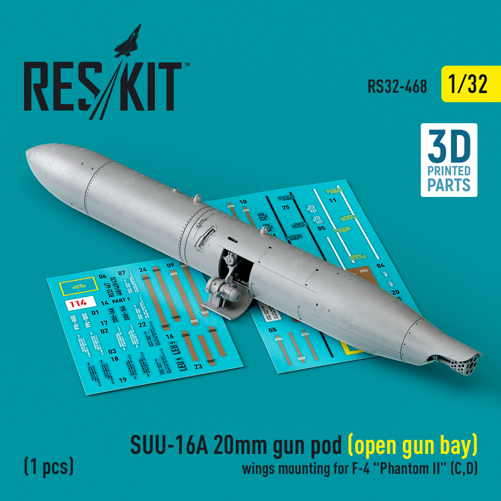 SUU-16A 20mm gun pod (open gun bay) wings mounting for F-4 Phantom II (C,D) (1 pcs) (3D Printed) (1/32)