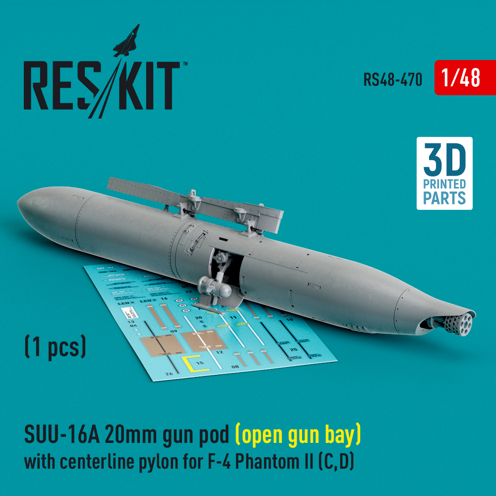 SUU-16A 20mm gun pod (open gun bay) with centerline pylon for F-4 Phantom II (C,D) (1 pcs) (3D Printed) (1/48)