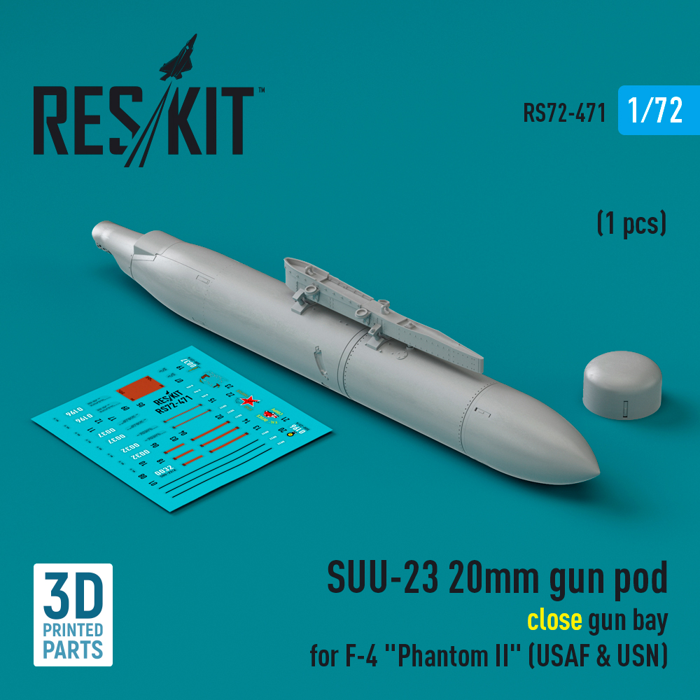SUU-23 20mm gun pod (close gun bay) for F-4 “Phantom II” (USAF) (1 pcs) (3D Printed) (1/72)